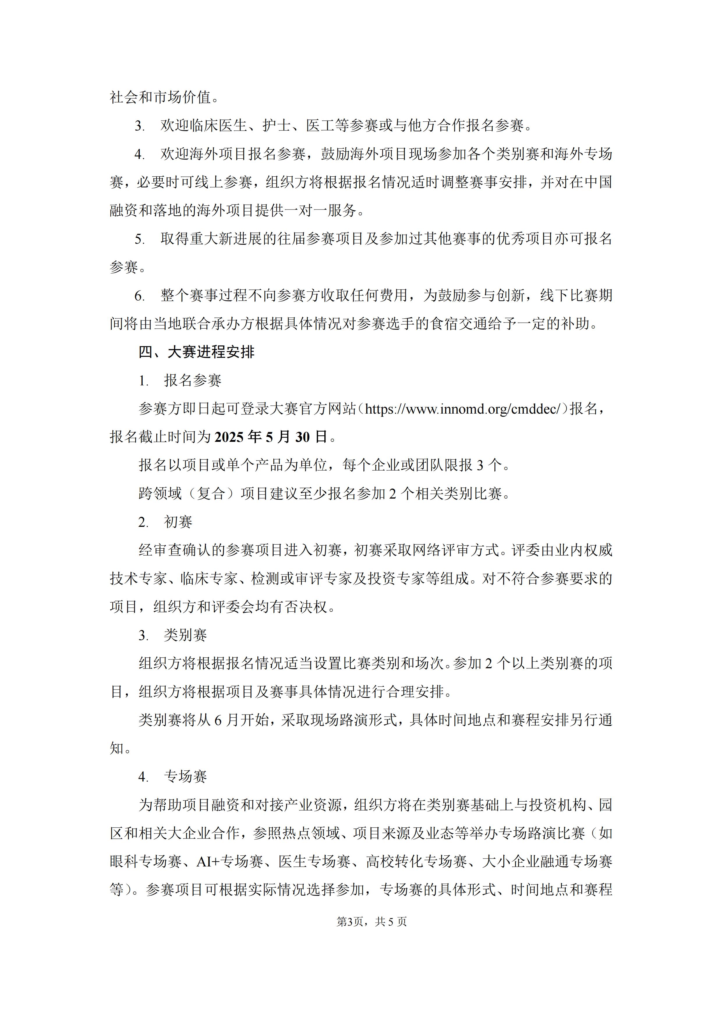 参赛方即日起可登录大赛官方网站(医疗器械创新网网://xmxingmumy.com/cmddec/)报名,报名截止时间为2025年5月30日。